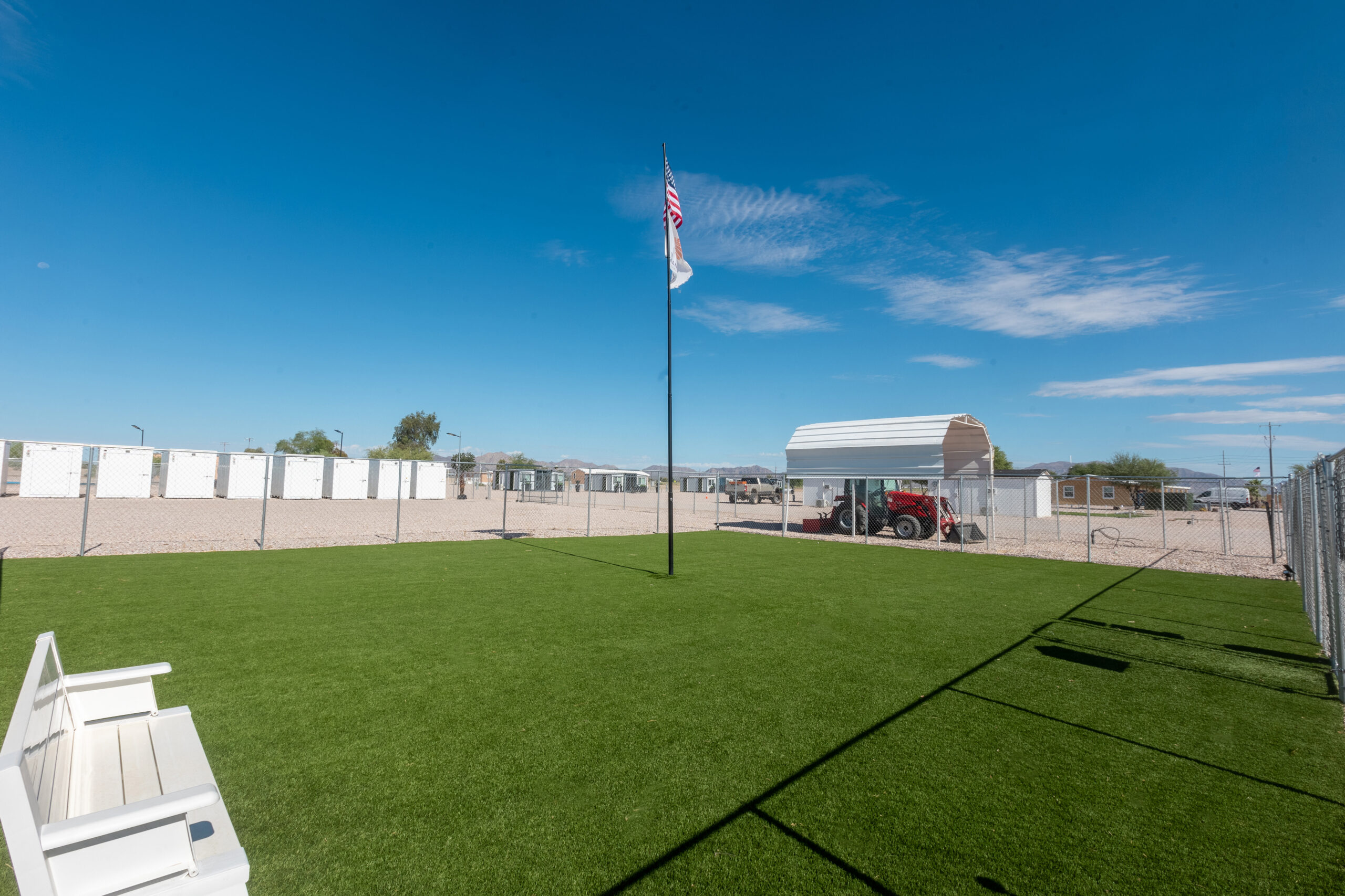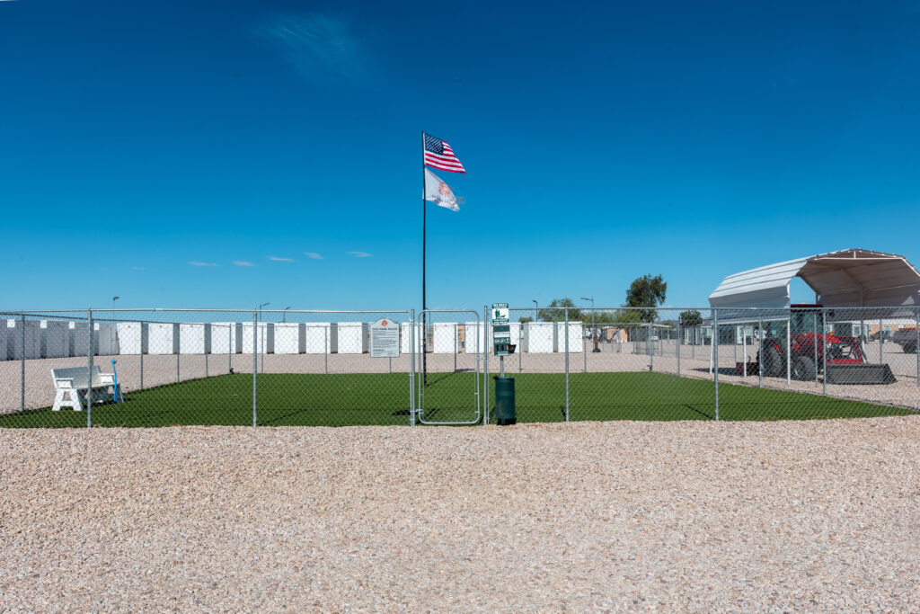 Fully fenced dog park with turf, waste stations, and lots of space to run.