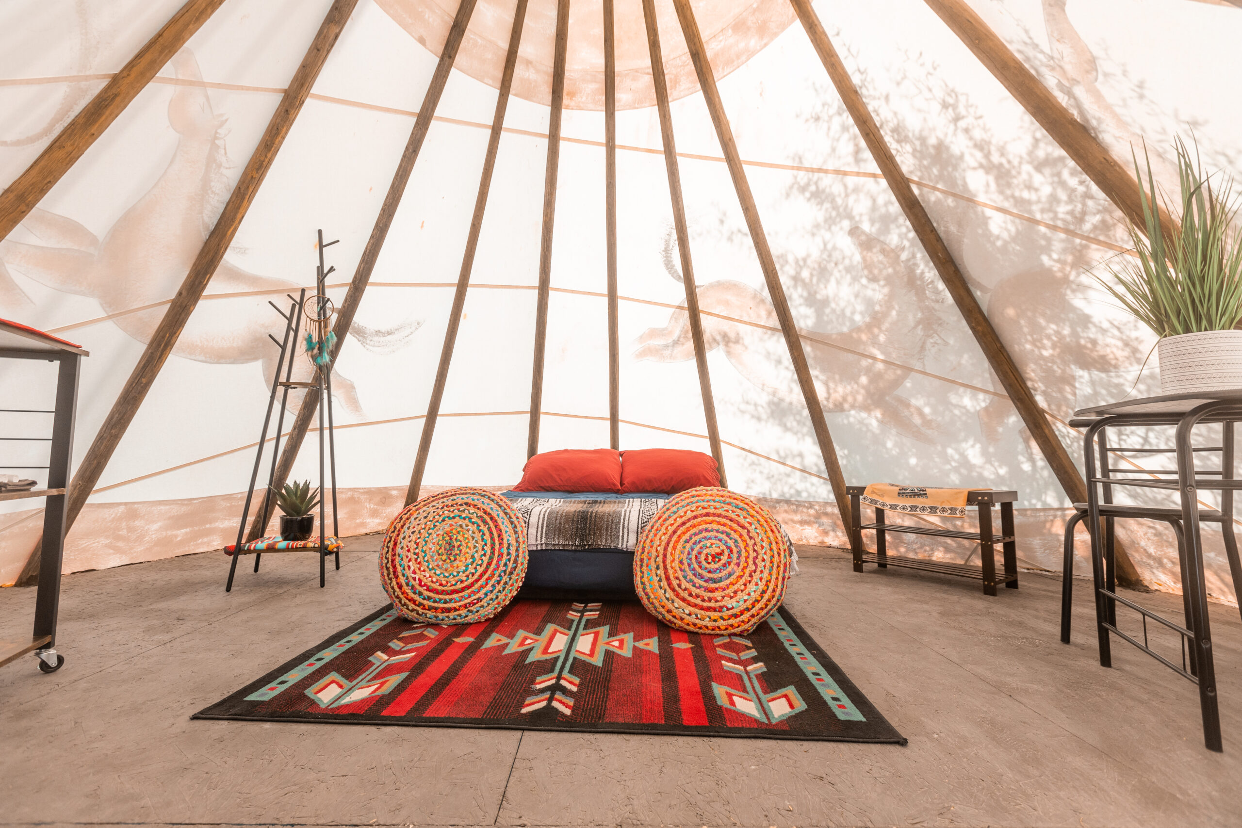 Unique overnight experience under Indian Hill’s stars. Furnished teepees with lighting, seating, and nearby restrooms/showers.