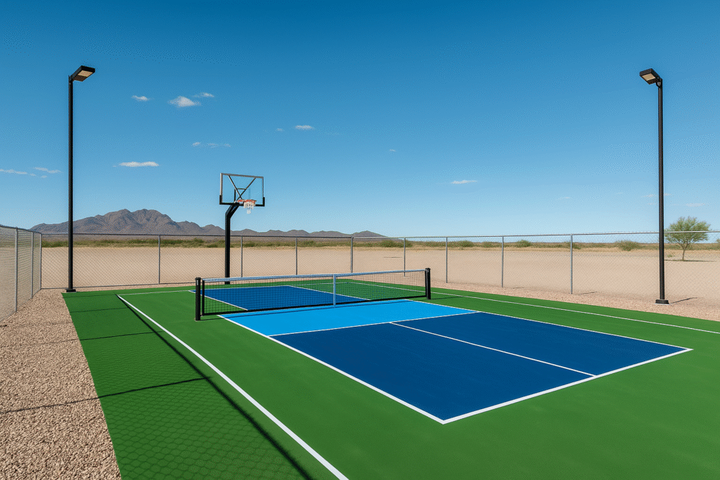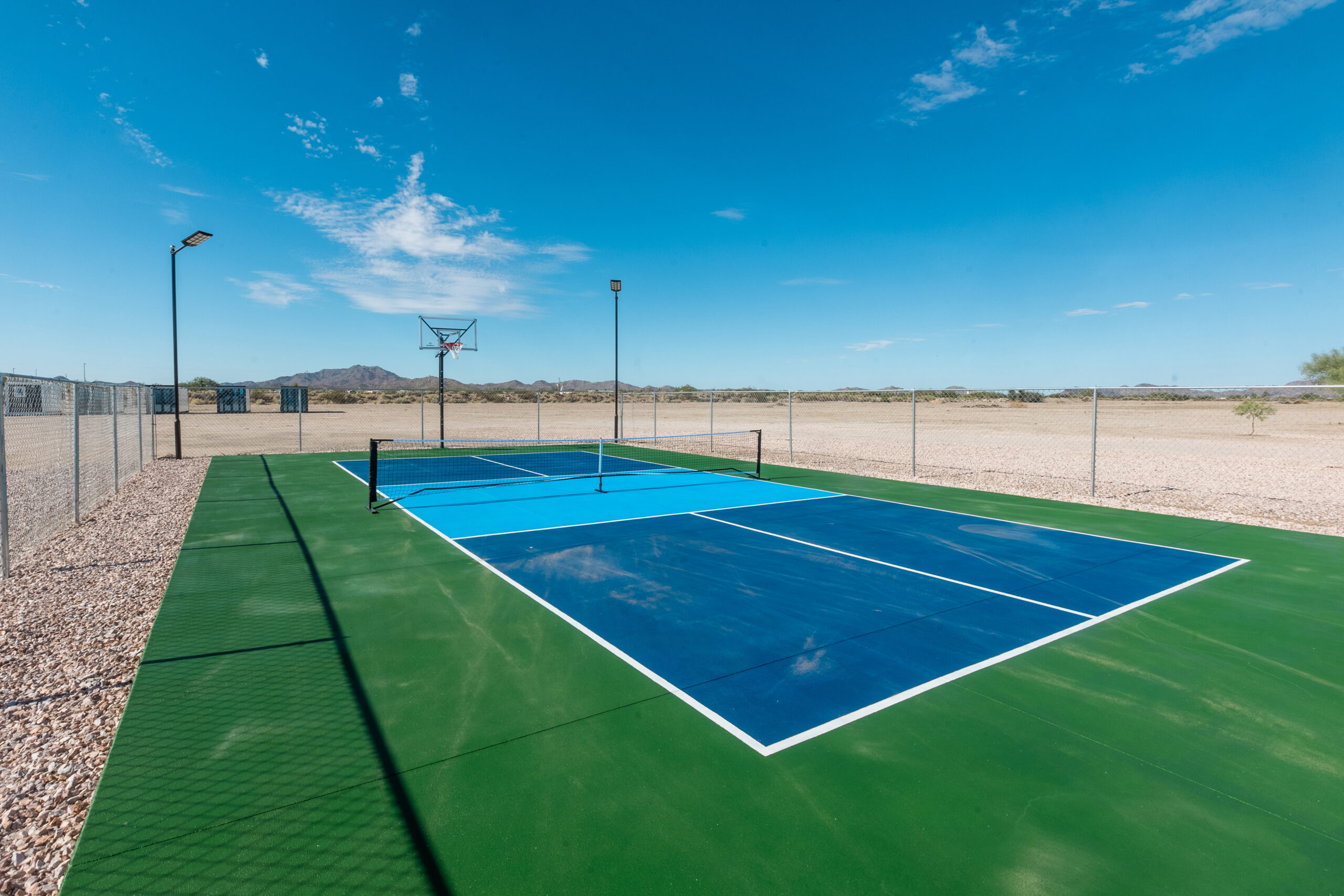 Play your way on our dual-use sport court built for both pickleball and basketball, with crisp lines and mountain views.