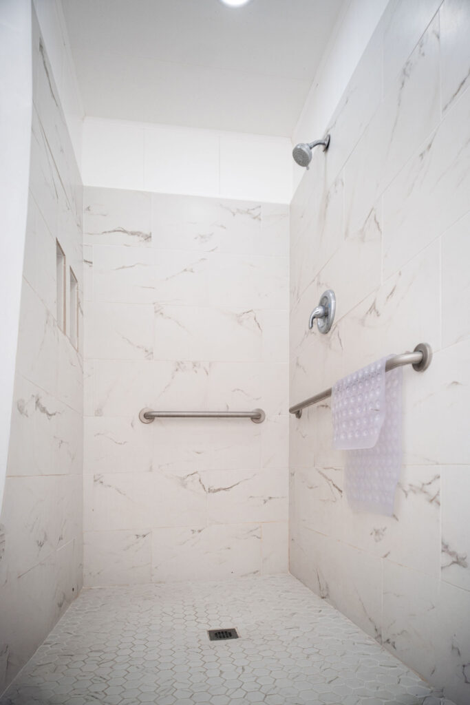 Renovated restrooms and tiled showers — clean, comfortable, and modern.