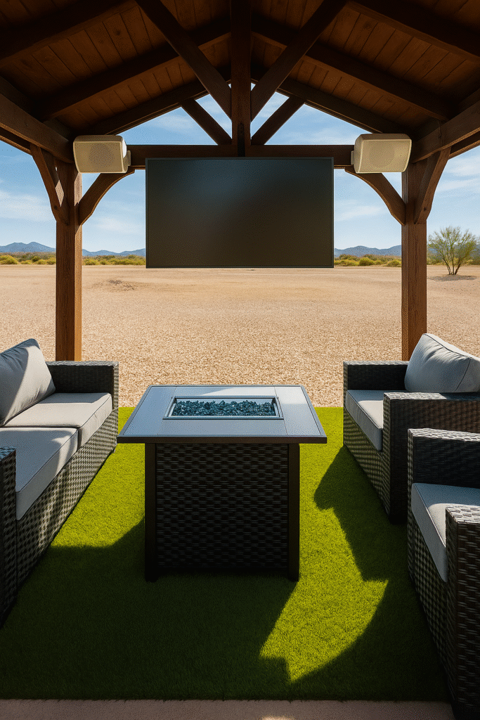 Enjoy unforgettable movie nights under the Arizona stars with a huge outdoor screen, surround sound, and comfortable lounge seating.